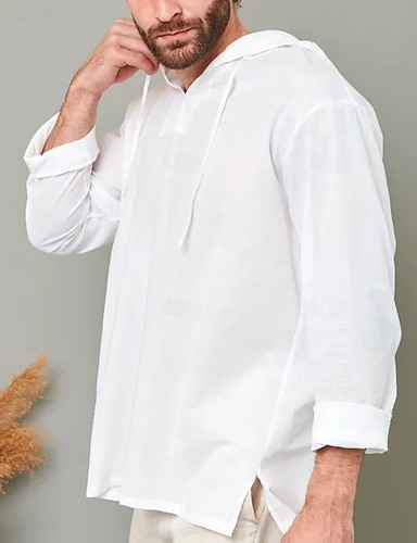 Bărbați Cămașă Cămașă de in Cămașă popover Cămașă de vară Costum de plajă Cămașă cu glugă Culoare solidă Vacanță Stradă Alb Verde Deschis Albastru piscină Trifoi Manșon Lung Capișon Vară Primăvară