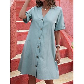 Pentru femei Alb Galben Roz Îmbujorat Vară Primăvară Toamnă Rochii Midi Rochii de in bumbac Rochie casual Rochie leagăn De Bază Clasic Casual În aer liber Vacanță Zilnic Potrivire Largă Simplu În V