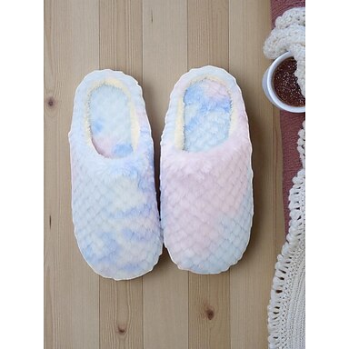 Papuci de casă pufoși, vopsiți în culorile curcubeului, pentru femei – pantofi de casă confortabili și din pluș, pentru relaxare pe timp de iarnă, petreceri în pijamale și ținute casual.