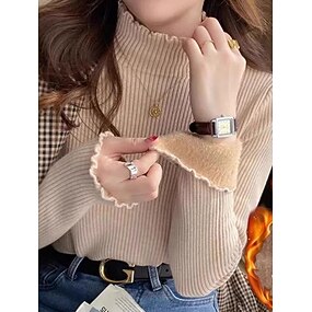Pentru femei Pulover Casual Moale Culoare pură Striat Guler Pe Gât Tricotat Manșon Lung Topuri obișnuite Tricotat În aer liber Zilnic Sfârșit de săptămână Negru Roșu Vin Toamnă Iarnă