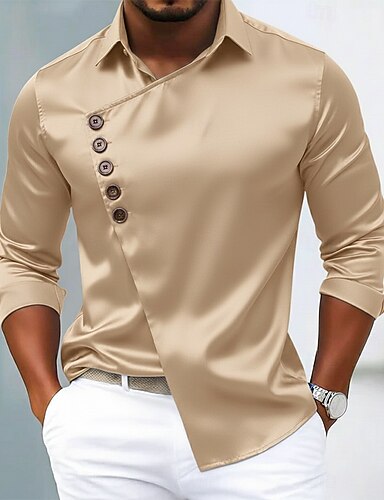 Bărbați Cămașă Cămașă din satin Cămașă de Costum Cămașă casual Camașă cu nasturi Simplu Oficial Nuntă Alb Roșu-aprins Albastru piscină Auriu Manșon Lung Rever Toate Sezoanele Îmbrăcăminte Nasturi