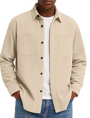 Bărbați Cămașă Cămasă Corduroy Camașă cu nasturi Albastru piscină Verde Militar Bej Manșon Lung Simplu Răsfrânt În aer liber Vacanță Buzunar Îmbrăcăminte Modă Șic Stradă Clasic Casual