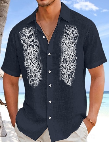Bărbați Cămașă Cămașă de in Cămașă de vară Costum de plajă Camașă cu nasturi Imprimeu floral Vacanță Curise Alb Bleumarin Trifoi Kaki Manșon scurt Guler Vară Primavara vara Îmbrăcăminte