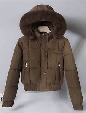 Pentru femei Palton de iarnă Geacă puffer Haina din blana sintetica Cald Comfortabil Fermoar Buzunar Nasturi Casual Simplu Vacanță Stradă Purtare Zilnică Ieșire Scurt Capișon Potrivire Largă Manșon