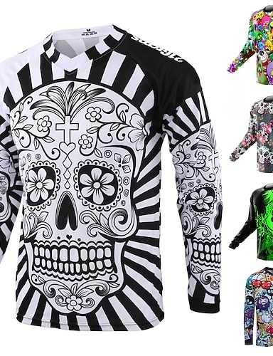 Bărbați Jersey de ciclism Downhill Jersey Jachetă Dirt Bike Cranii Cu model Craniu de zahăr Manșon Lung Bicicletă Jerseu Topuri cu 3 buzunare spate Ciclism montan Ciclism stradal Termic cald