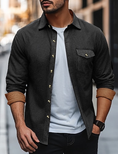 Bărbați Cămasă Corduroy Jachetă cămașă Cămașă peste Cămașă groasă Culoare solidă Stradă Zilnic Negru Maro Manșon Lung Răsfrânt Toamna iarna Îmbrăcăminte Buton în jos