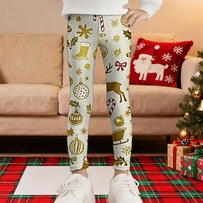 Crăciun Fete 3D Grafic Brad de Crăciun Dungi Pantaloni Leginși Primăvară Toamnă Drăguţ De Bază Copii 4-12 ani În aer liber Casual Zilnic Fit regulat