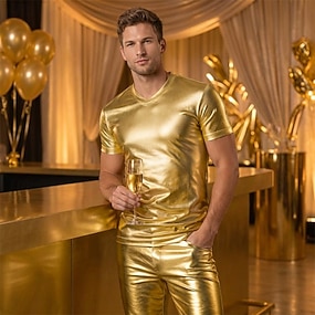 Retro / vintage Anii 1980 Tricou Hanorca Disc Brevet de latex strălucitor Metalic Costume de fancy Bărbați Halloween Carnaval Parada Mândriei Luna Mândriei Adulți Cămașă
