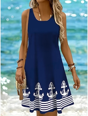 Pentru femei Rochie Mini Rochie casual Rochie etnică Rochie Boho Rochie cu decolteu Modă Clasic Casual Vacanță Zilnic Concediu Fit regulat Geometric Imprimeu Fără manșon Stil Nautic Gâtul halter
