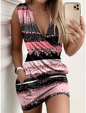 Pentru femei Rochie Mini Rochie teacă Rochie împachetată Rochie de vară Casual Zilnic Fit regulat Grafic Geometric Fără manșon În V Roz Îmbujorat Albastru piscină Mov Trifoi Vară