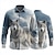 Bărbați Animal Lup Natural & Peisaj Cămașă Camașă cu nasturi Manșon Lung Vintage Retro În aer liber Casual Vânătoare Primăvară Toamnă Răsfrânt Imprimare 3D cămăși cu guler Albastru piscină Gri