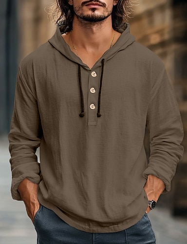 Bărbați Cămașă Cămașă de in Costum de plajă Camașă cu nasturi Cămașă cu glugă Simplu Vacanță Casual Alb Albastru piscină Verde Militar Gri Manșon Lung Capișon Vară Primăvară Îmbrăcăminte Nasturi