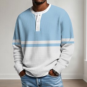 Bărbați Grafic Geometric Bloc Culoare Cămașă Henley Waffle Stil casual Stil Clasic Manșon Lung Modă Designer De Bază Casual Zilnic În aer liber Primăvară Primăvara & toamnă Verde Deschis Albastru