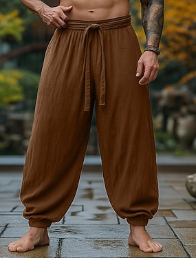 Bărbați Pantaloni de in Pantaloni Pantaloni de vară Pantaloni largi Cordon Talie elastică Picior Larg Simplu Confort Respirabil Lungime totală În aer liber Yoga Sală de Fitness Modă Retro / vintage
