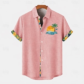 Bărbați Cămașă Cămașă de in Cămașă de vară Cămașă de plajă Camașă cu nasturi Copac de cocos Concediu Purtare Zilnică Alb Roz Îmbujorat Albastru celest Trifoi Manșon scurt Răsfrânt Vară Îmbrăcăminte