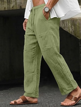 Bărbați Pantaloni de in Pantaloni Pantaloni de vară Talie elastică Picior drept Ridicare înaltă Culoare solidă Confort Respirabil Lungime totală În aer liber Casă Casual Vacanță Modă Verde Gri Negru
