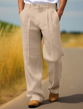 Bărbați Costume Pantaloni de in Pantaloni Pantaloni de vară Pantaloni plisați Buzunar frontal Picior drept Simplu Confort Respirabil Lungime totală Casual Zilnic Concediu Modă Șic Stradă Negru Alb