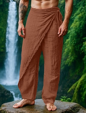 Bărbați Joggeri Pantaloni Pantaloni de vară Pantaloni largi Pantaloni de plajă Cordon Talie elastică Drop Crotch Simplu Confort Respirabil Lungime totală În aer liber Casual Concediu Stilul etnic