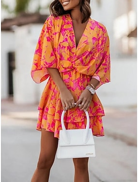 Pentru femei Rochii Midi Rochie florala Rochie imprimata Modă Modern În aer liber Vacanță Ieșire Potrivire Largă Floral Manșon Jumate În V Vernil Roșu-aprins Mov Vară Primăvară