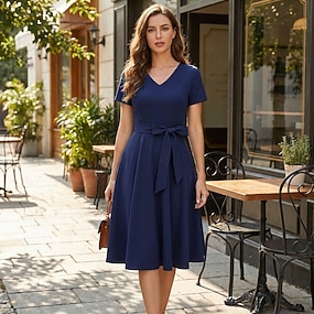 Elegant 1950 Miezul zilei Rochii Mâneci scurte Culoare solidă Simplu Linia -A În V Costume de fancy Pentru femei Casual Petrecere Zilnice Adulți Rochie Primavara vara