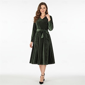 Retro / vintage 1950 O rochie de linie Rochie leagăn Catifea Costume de fancy Pentru femei Rochie Elegantă An Nou Petrecere Petrecere cu tematică retro Adulți Rochie