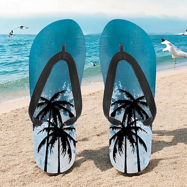 șlapi pentru bărbați cu frunze albastre imprimate – stil tropical și elegant pentru vacanțe la plajă, călătorii la insule și cine pe plajă