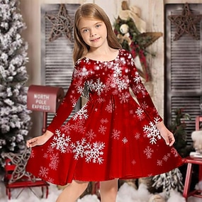 Crăciun Girls ' 3D Grafic Fulg zăpadă Rochie Manșon Lung Primăvară Toamnă Vacanță Zilnic Concediu Frumoasa Dulce Copii 4-12 ani Rochie de petrecere Rochie A line Lungime Genunchi Fit regulat