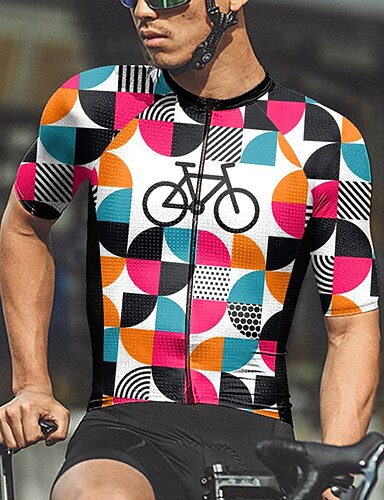 Bărbați Jersey de ciclism Geometric Geometrie Manșon scurt Bicicletă Topuri cu 3 buzunare spate Ciclism montan Ciclism stradal Uscare rapidă Dungi reflectorizante Înapoi de buzunar Confortabil la