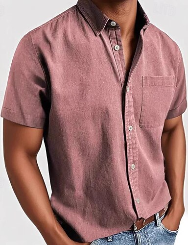 Bărbați Cămașă Cămașă casual Camașă cu nasturi Negru Alb Roz Îmbujorat Roșu-aprins Bleumarin Manșon scurt Simplu Rever Casual Zilnic Buzunar frontal Îmbrăcăminte Elegant Modă Casual