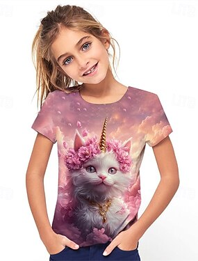Fete 3D Grafic Inorog Tricou Manșon scurt Vară Primăvară Modă De Bază Copii 4-12 ani Stil Nautic În aer liber Casual Zilnic Fit regulat