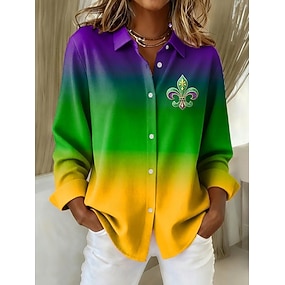 Carnaval Mardi Gras Pentru femei Cămașă Bluză Peteci Nasturi Imprimeu Ombre Grafic Geometric Epocă Casual Manșon Lung În V Guler Cămașă Topuri obișnuite Zilnic Alb Trifoi Vară Primăvară Toamnă Iarnă