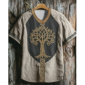 Bărbați Tricou Tricouri Tricouri grafice Cămașă cu mânecă scurtă Manșon scurt În V Vară Tribal Copacul Vieții Yggdrasil Epocă Designer De Bază Imprimeu Vacanță Stradă Ieșire Albastru piscină Kaki Top