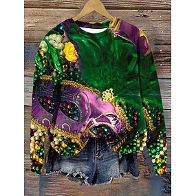 Carnaval Hanorac Femei Pulover Graphic Abstract Casual Manșon Lung Gât Rotund Regular Tops Casual Stradă Zilnic Imprimare Albastru Violet Verde Toamnă Iarnă