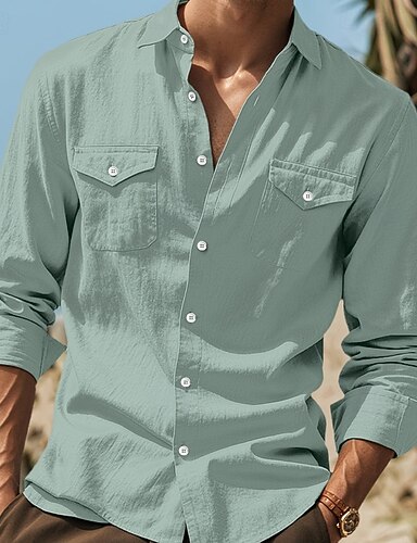 Bărbați Cămașă cămașă de in Cămașă de vară Camașă cu nasturi Culoare solidă Vacanță Stradă Alb Trifoi Kaki Albastru Deschis Manșon Lung Guler Îmbrăcăminte Buzunar