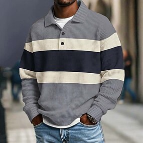 Bărbați Benzi orizontale Tricouri polo Waffle Polo de rugby Tricouri polo de rugby Manșon Lung Tricouri de polo Rever Îmbrăcăminte sportivă Casual Școală Îmbrăcăminte Atletică Purtare Zilnică