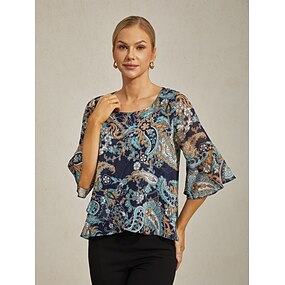 Pentru femei Femeie Imprimeu Paisley Casual Albastru piscină Paisley 3/4 Mânecă Elegant Casul Zilnic Stil Nautic Rundă Vară Primăvară Toamnă