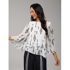 Pentru femei Femeie Cămașă casual Abstract Casual Manșon de lanternă Negru 3/4-Lungime Mânecă Elegant Vacanță În V Vară Cross-Seasons