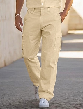 Bărbați Pantaloni Cargo Pantaloni de in Pantaloni Pantaloni de vară Pantaloni casual Cordon Talie elastică Multi Buzunare Simplu Confort Respirabil Lungime totală Casual Zilnic Concediu Vacanță Modă