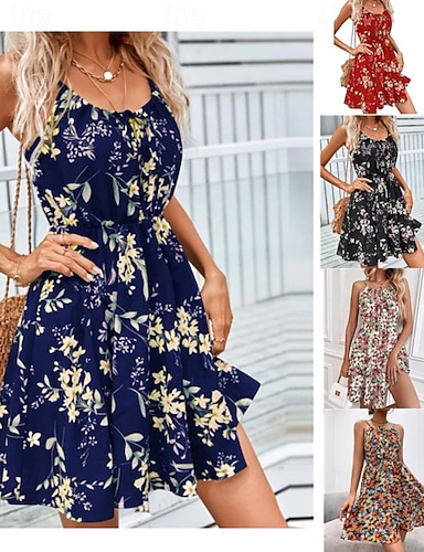 Pentru femei Rochie Mini Rochie casual Rochie A line Rochie florala Rochie de vară Stilat Casual Zilnic Vacanță Dată Fit regulat Floral Fără manșon Cu Bretele Roșu-aprins Mov Vară Primăvară