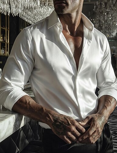 Bărbați Cămașă Cămașă din satin Cămașă de Costum Cămașă casual Camașă cu nasturi Cămașă de bal Simplu Petrecere Nuntă Albastru piscină Albastru Deschis Negru Alb Manșon Lung Rever Primăvară Toate