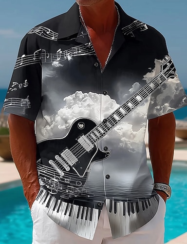 Bărbați Chitară Instrument muzical Cămașă Camașă cu nasturi Cămașă de tabără Manșon scurt Vintage Retro festival de muzică Concediu Vară Primăvară Guler cubanez Imprimare 3D Negru Vișiniu Albastru