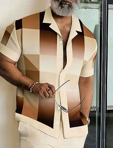 Bărbați Geometric Bloc Culoare Culoare gradient Cămașă Camașă cu nasturi Cămașă de tabără Manșon scurt Moda Casual Haine de strada Vacanță Vară Primăvară Guler cubanez Imprimare 3D Albastru piscin