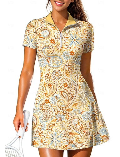 Pentru femei Imprimeu Paisley Floral Rochie de tenis Rochie sport Manșon scurt Imprimeu Respirabil Tenis Golf Badminton Guler Gulerul Polo Rochii Galben Deschis Roz Rosu Îmbrăcăminte de tenis