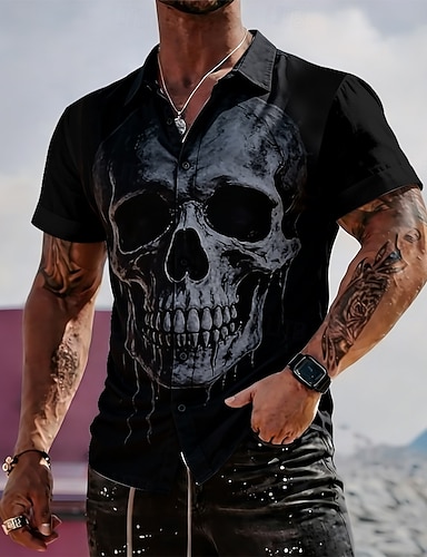 Bărbați Cranii Cămașă Cămașă casual Camașă cu nasturi Manșon Lung Stil gotic întunecat Haine de strada Vacanță Vară Primăvară Răsfrânt Imprimare 3D cămăși cu guler Albastru piscină Negru Mov Kaki Gri