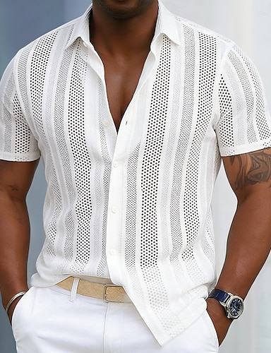 Bărbați Cămașă Cămașă de vară Camașă cu nasturi Cămașă Jacquard Cardigan Negru Alb Manșon scurt Texturat Modă Rever Casual Casă Găurite Îmbrăcăminte Modern Contemporan modern Casual