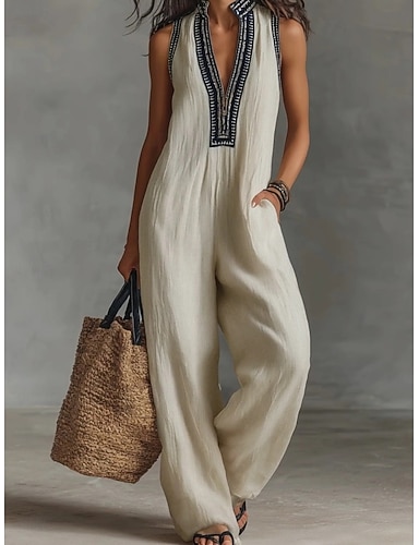 Pentru femei Normal Salopete Activ Culoare solidă Fără manșon Picior Larg În V Peteci Buzunar Zilnic Vacanță Potrivire Largă Albastru piscină Negru Caisă Vară