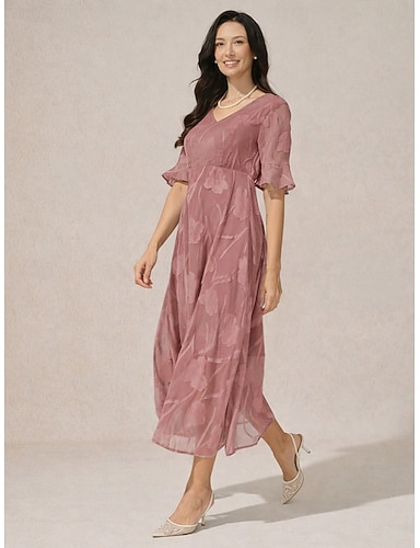 Pentru femei Rochii Midi Rochie A line Elegant Zilnic Vacanță Invitat la nunta Dantelă Fit regulat Floral Manșon scurt În V Roz Prăfuit