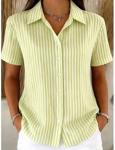Pentru femei Cămașă Nasturi Imprimeu Grafic Dungi Epocă Stilat Modern Manșon scurt Guler Cămașă Topuri obișnuite Casual Zilnic Albastru piscină Roșu-aprins Trifoi Vară Primăvară