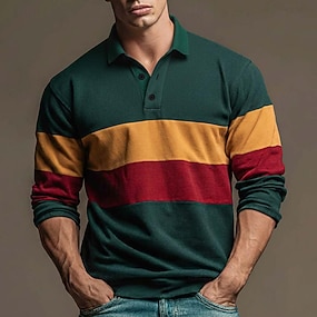 Bărbați Bloc Culoare Dungi Polo de rugby Manșon Lung Tricouri de polo Cămăși cu guler Casual În aer liber Îmbrăcăminte Atletică Imprimare 3D Primăvară Toamnă Maro Închis Mov Trifoi