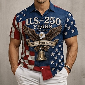 Bărbați 4 iulie - 250 de ani de existență a Statelor Unite Vultur Steagul SUA Cămașă Camașă cu nasturi Manșon scurt Patriotic În aer liber Concediu Vară Primăvară Răsfrânt Imprimare 3D cămăși cu guler